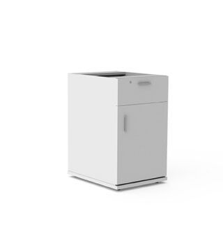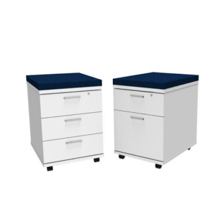 A mobile pedestal that doubles as guest seating is the solution to a bustling office where team members work together and provide feedback on each-other’s work. The cushioned top, strong casters and solid base make for a sturdy and comfortable seat.